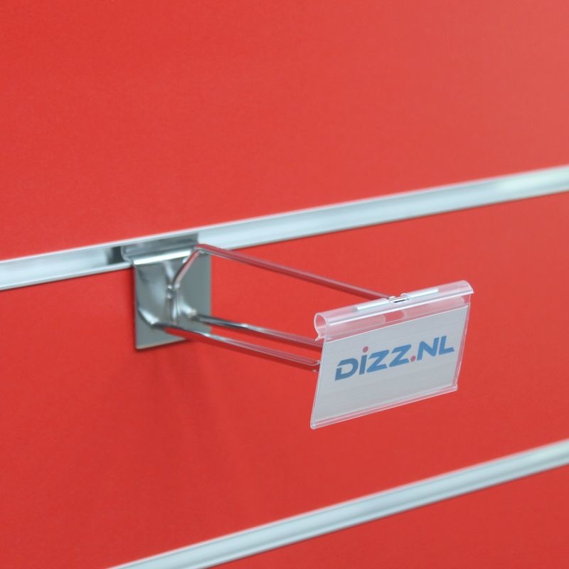 De goedkoopste oplossing om uw product te presenteren aan een slatwall wand. Uitstekende prijs / kwaliteitsverhouding. Standaard in een verchroomde uitvoering.