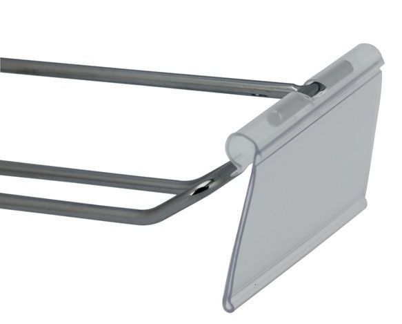 Eurohaak met bovenstang waaraan eenvoudig een etikethouder gehaakt kan worden. Deze dient apart mee besteld te worden. Deze haken zijn geschikt voor slatwall / lamelwanden.